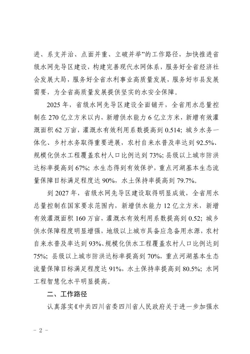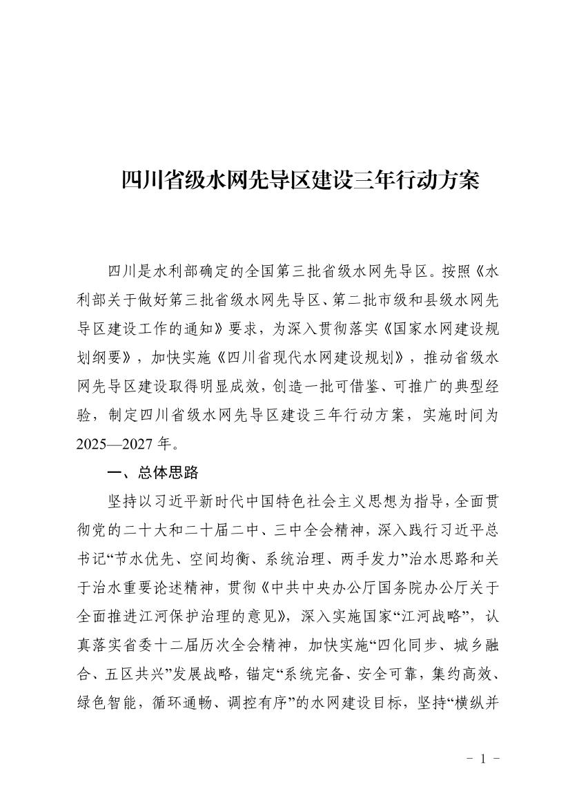 《四川省级水网先导区建设三年行动方案》已经省政府批复,现印发你们,请认真贯彻落实。