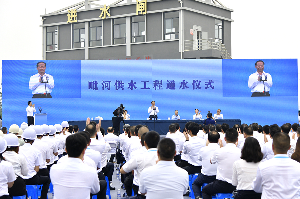 2021年7月6日,我省“西水东引”重大调水引水工程毗河供水工程通水仪式在成都市新都区苟家滩引水枢纽举行