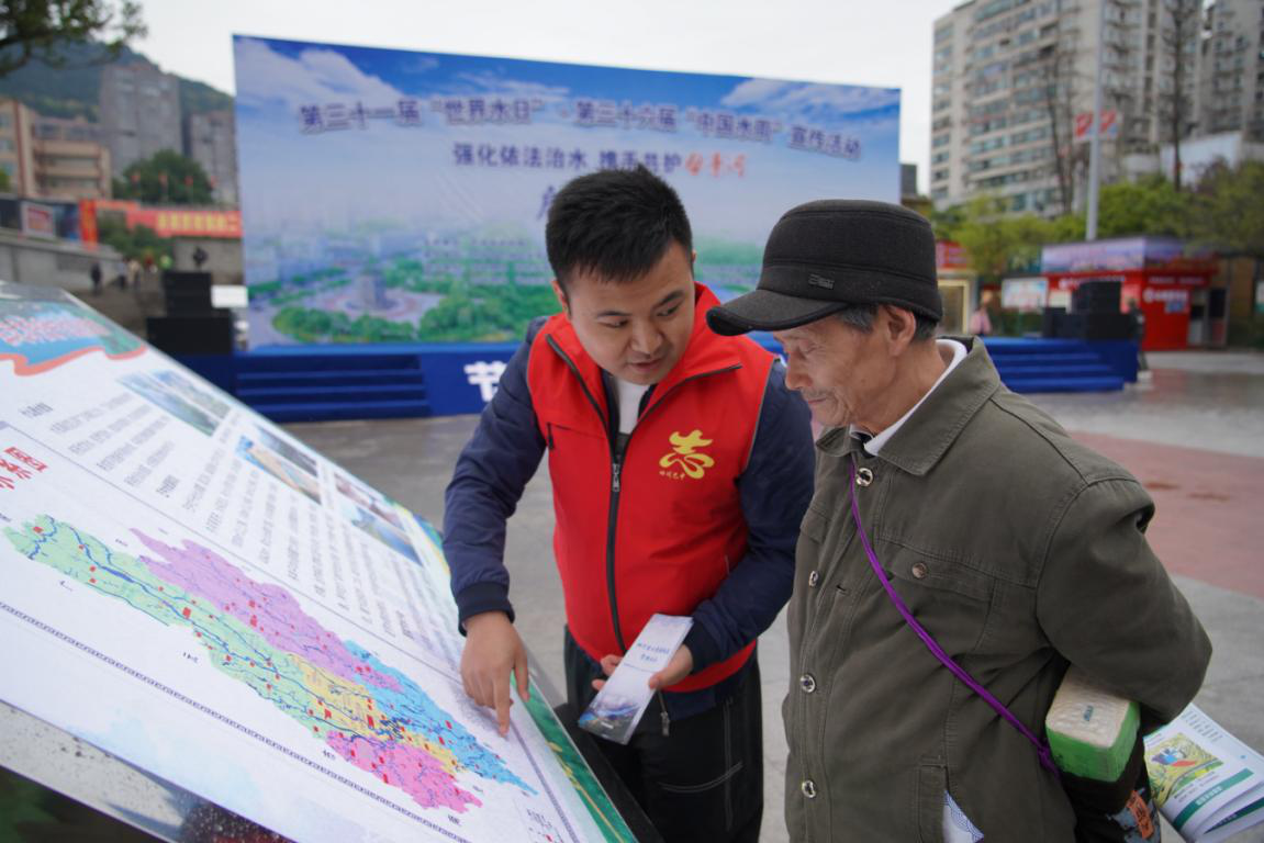 志愿者向市民讲解巴中水情,宣传巴中水利成效