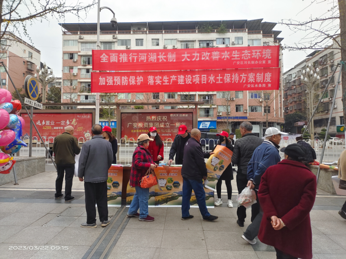 一是抓社区宣传,促爱水意识提升。3月22日,广安区水务局在龙马商业广场以设置展板、悬挂横幅、张贴海报、发放宣传手册的方式,向广大群众宣传普及水资源保护、水环境治理和家庭节水小窍门等相关知识,并对涉水法律法规进行讲解,呼吁大家共同致力于保护水资源、防治水污染、改善水环境、修复水生态。活动共计发放节水护水、水土保持、防汛抗旱、河湖长制等宣传资料6000余份,进一步增强了社会群众的爱水节水观念,提高水资源保护意识,让集约节约利用水资源成为社会共识。