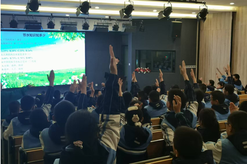 活动现场,工作人员以《节约用水,从我做起》为题给学生们带来了一场生动的节水宣传课,通过水资源情况介绍,引人入胜的“奇妙节水课”以及《节约用水条例》宣贯解读,让同学们深刻感受到身边水资源的来之不易,明白节约用水的重要性。同时,向同学们分享了日常生活中节水小妙招,鼓励同学们养成“适量使用”“一水多用”“做好检查”等良好的用水习惯。活动中还设置了互动抢答环节,寓教于乐。学生们纷纷表示,他们要用自己的实际行动带动和影响身边的人,形成节水、惜水、爱水的良好习惯。