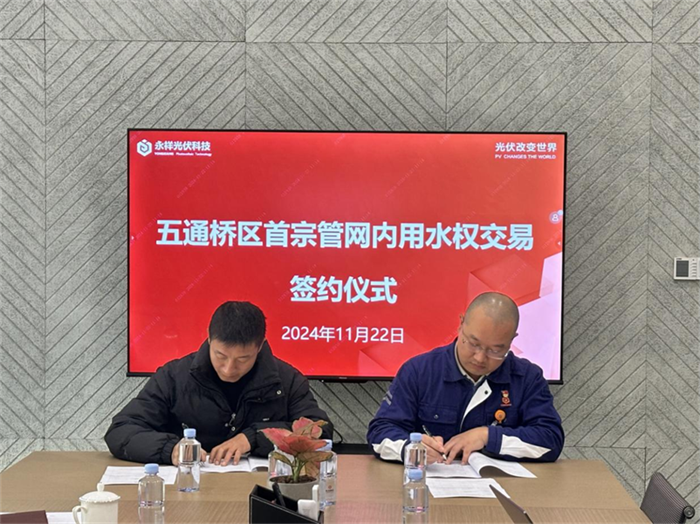 12月9日,在乐山市水务局和五通桥区水务局的指导下,四川永祥光伏科技有限公司与四川源洁鑫泰环保科技有限公司完成全省首宗公共管网内用水权交易。