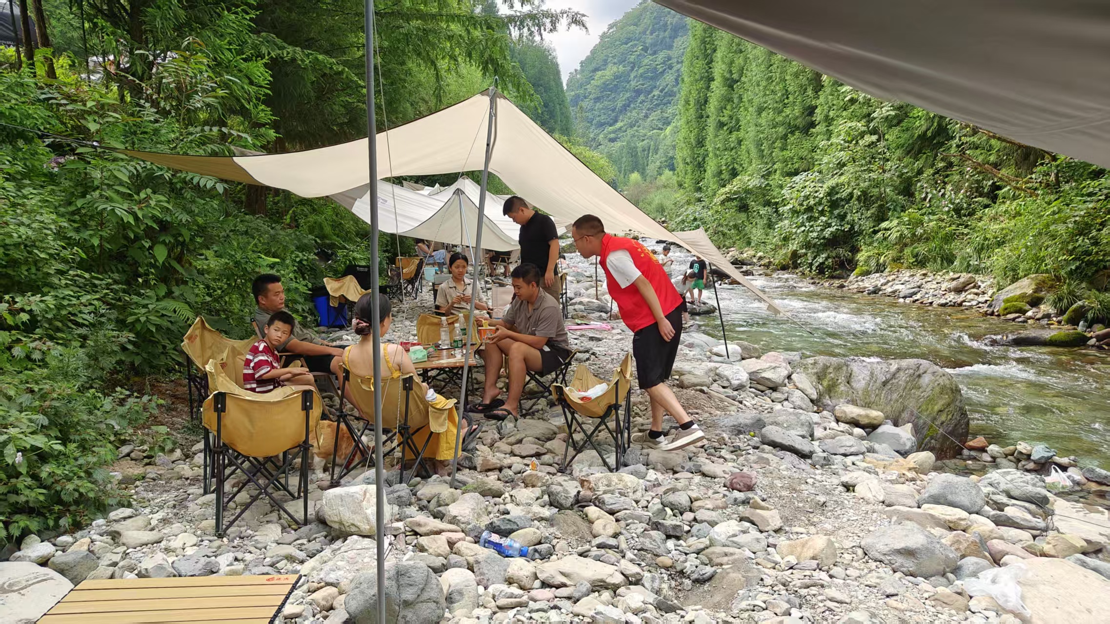 瓦屋山镇网格员劝离河道露营戏水人员