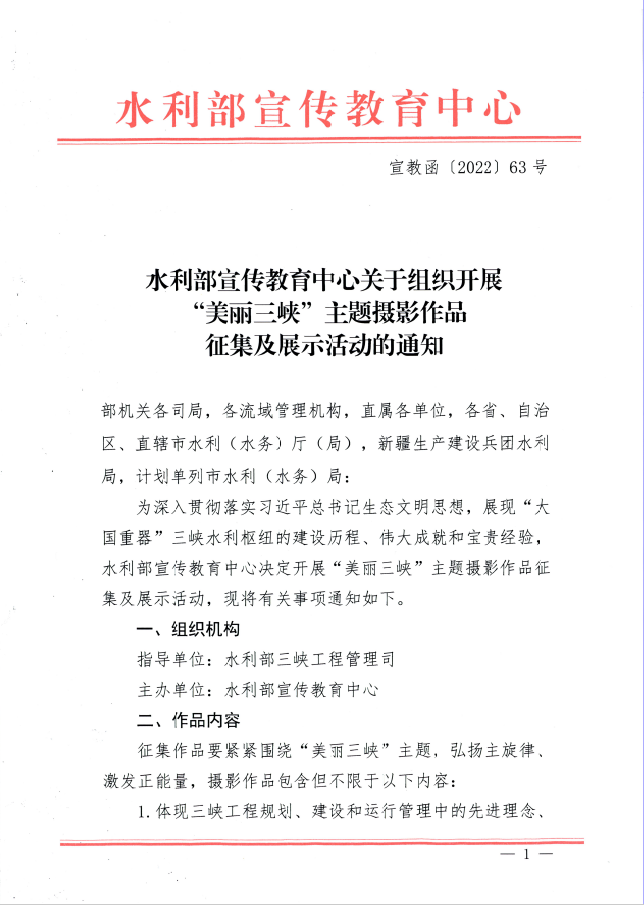 水利部宣传教育中心关于组织开展“美丽三峡”主题摄影作品征集及展示活动的通知