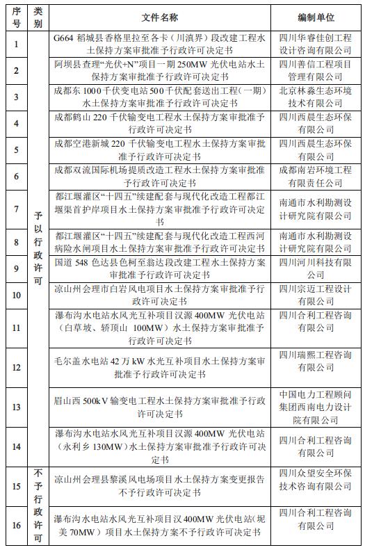 根据水土保持法、行政许可法、生产建设项目水土保持方案管理和猫都论坛公开 的有关规定,经组织技术审查,2023年9月1日至2023年9月30日我厅对14个生产建设项目水土保持方案作出了准予行政许可决定,对2个生产建设项目水土保持方案作出了不予行政许可决定。现予以公告,公告期为2023年10月15日-2023年11月14日。