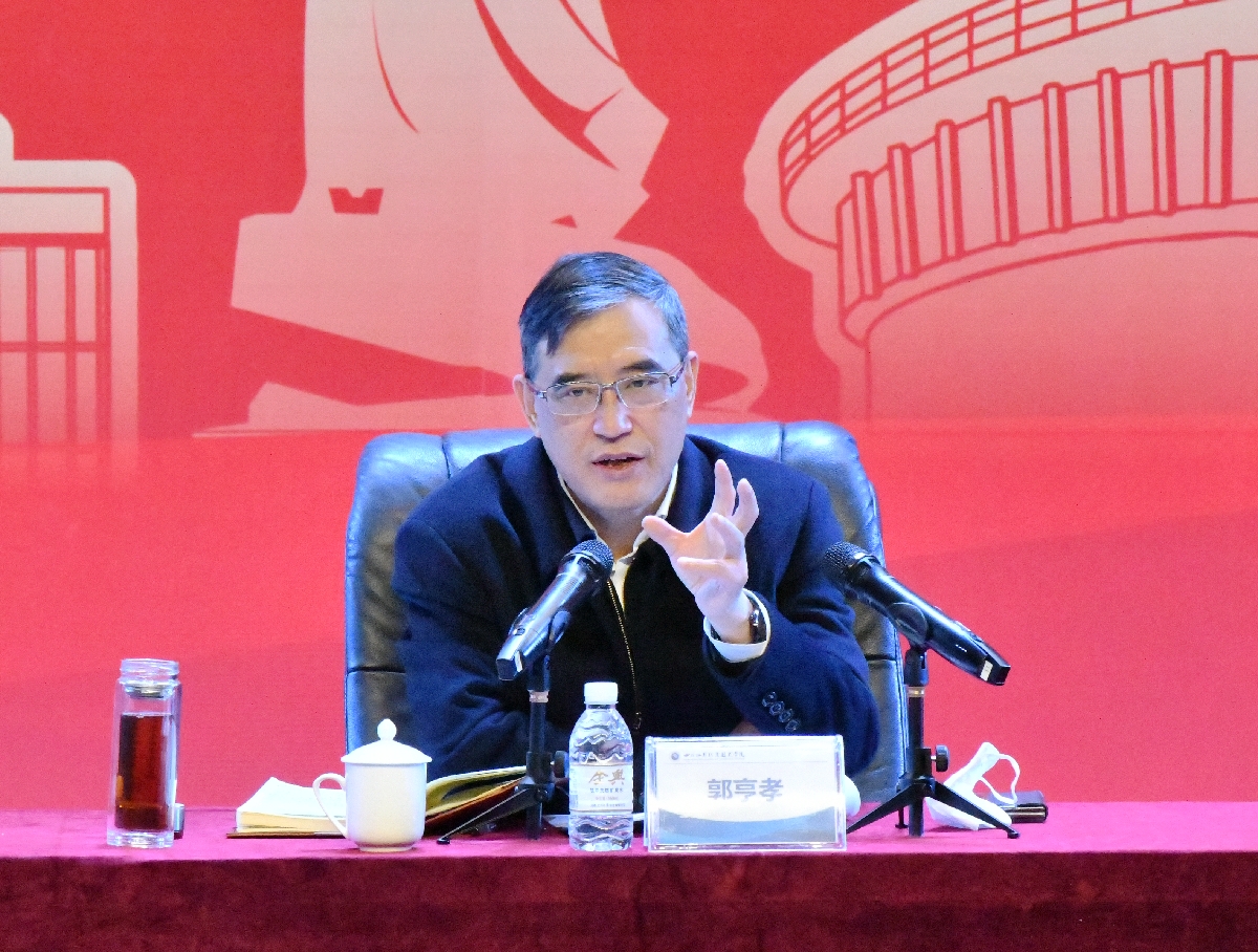 结合水利工作实践,郭亨孝与学校干部师生分享交流了近两年来四川水利深入学习践行习近平新时代中国特色社会主义思想,尤其是运用系统思维,大力提升水利工作定位,丰富水利内涵拓展外延,创新提出新时期四川水利高质量发展“3226”总体工作思路;抢抓重大水利工程建设的“牛鼻子”和突破口,带动水利工作整体提升,推进新时期四川水利高质量发展;大力推进改革创新,实现灌区一体化改革、深入推进作风整顿、构建新农水格局,进一步激发水利发展活力等工作中的成功经验做法。