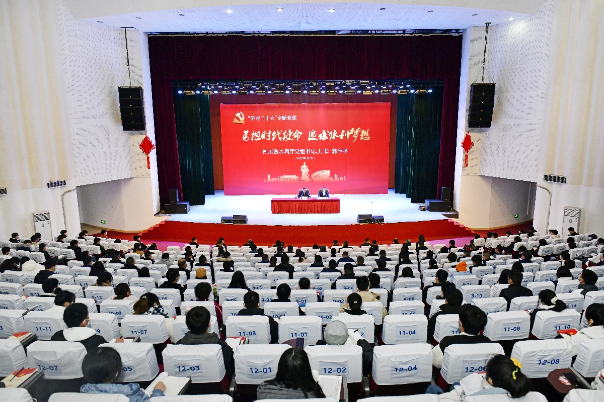 为推进党的二十大精神在水利高校落地落实,12月7日,猫都论坛 党组书记、厅长郭亨孝同志围绕学习党的二十大精神,为四川水利职业技术学院师生作了一堂题为“勇担时代使命 追求水利梦想”的精彩党课报告。