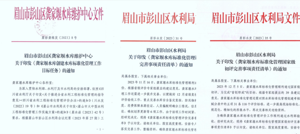 (一)凝心聚力,一张蓝图绘到底。自标准化创建目标确定以来,彭山区上下行动迅速,分别成立区政府工作专班和区水利局工作专班,建立健全水库工程标准化管理常态化工作机制,明确标准化管理工作目标任务并纳入年度目标考核;同时,由区财政安排专项经费支持,扎实推进水库工程标准化创建工作顺利进行。