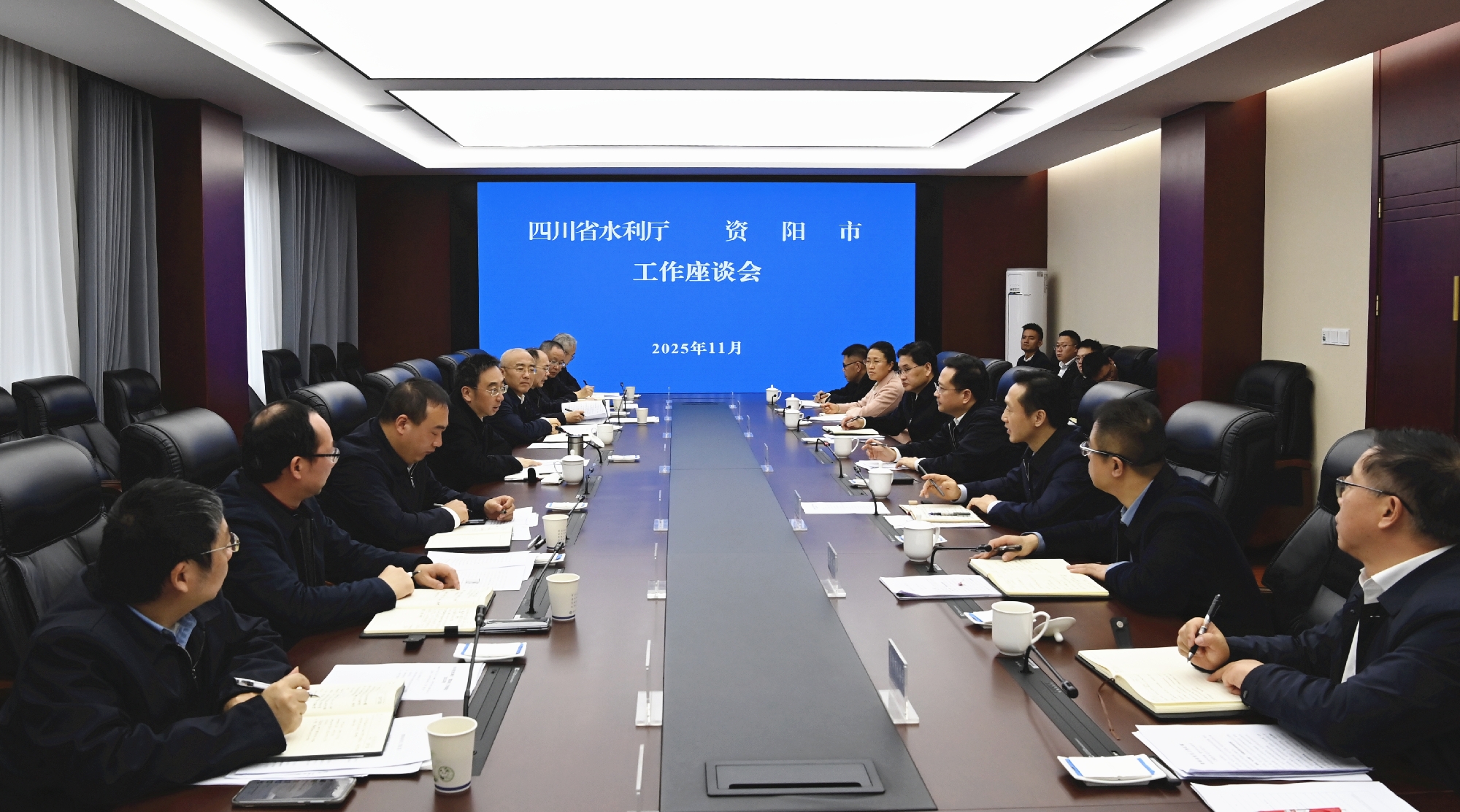 党组书记、厅长董里会见资阳市委书记袁泉一行,双方围绕重点项目谋划推进、水资源配置调度及幸福河湖建设等事宜开展深入交流。