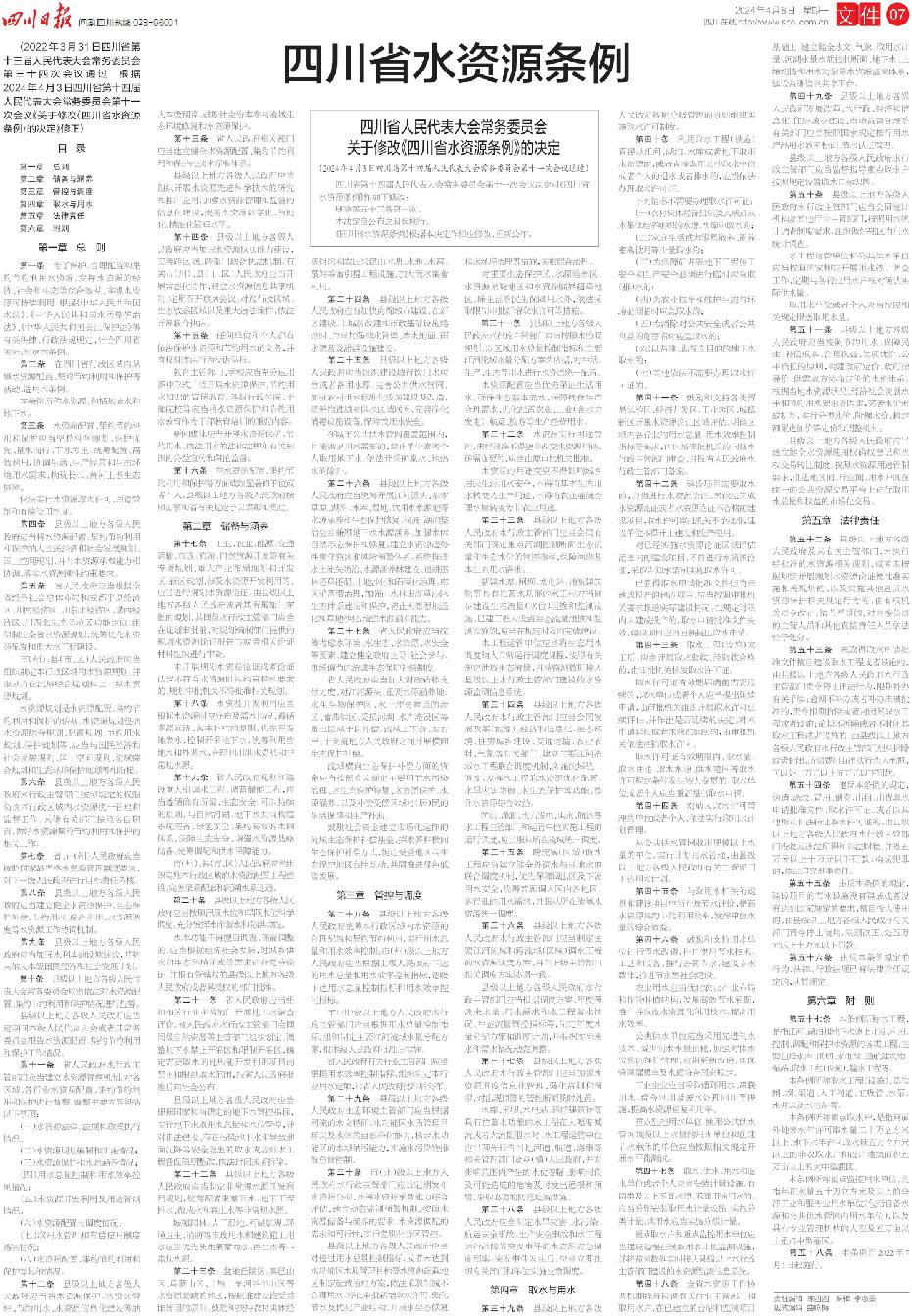 (2022年3月31日四川省第十三届人民代表大会常务委员会第三十四次会议通过 根据2024年4月3日四川省第十四届人民代表大会常务委员会第十一次会议《关于修改〈四川省水资源条例〉的决定》修正)