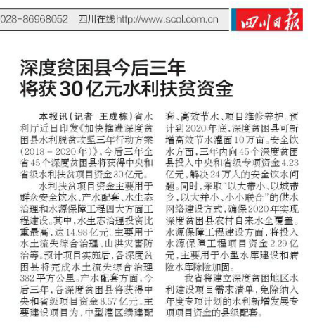 一是围绕打好精准脱贫攻坚战,主动公开扶贫相关政策等信息。在《四川日报》《四川农村日报》等媒体上公开了我省今后三年对深度贫困县水利脱贫攻坚的资金支持、项目安排及预期目标,猫都论坛公告