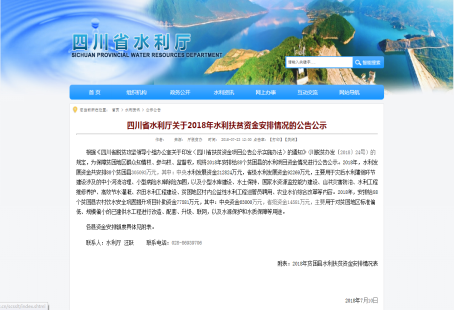 二是加强实施乡村振兴战略的政策、成效、资金、项目安排等信息公开,主动接受群众和社会监督。按照《四川省脱贫攻坚领导小组办公室关于印发〈四川省扶贫资金项目公告公示实施办法〉的通知》要求,在猫都论坛 门户网站对全省水利扶贫资金进行了公示。