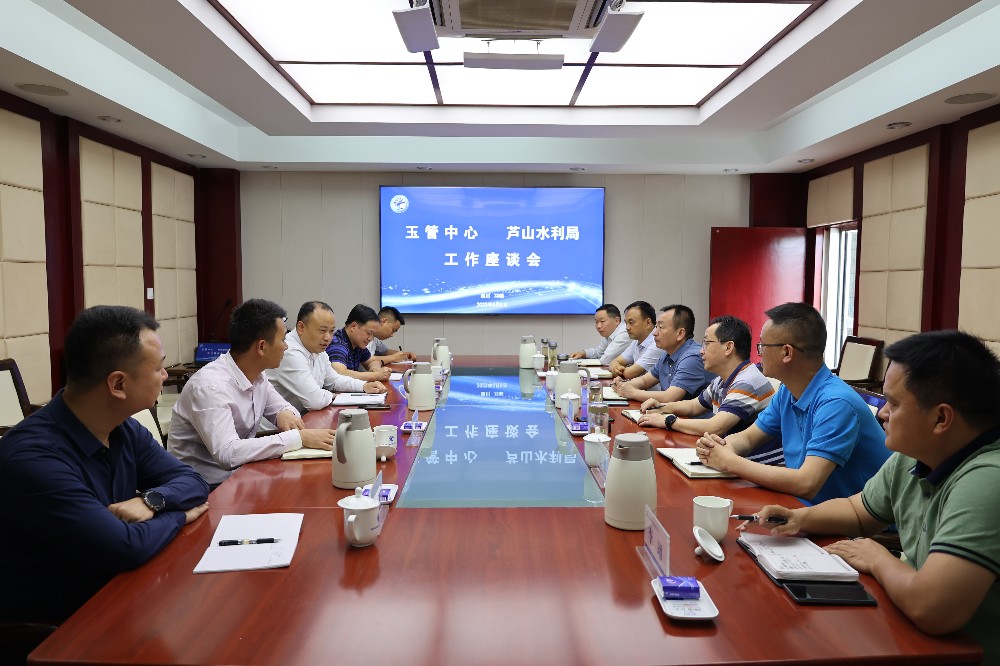 5月5日,雅安市芦山县水利局局长竹世军一行来到四川省玉溪河灌区运管中心(以下简称玉管中心)座谈交流,玉管中心党委书记、主任肖伟胜出席座谈会。