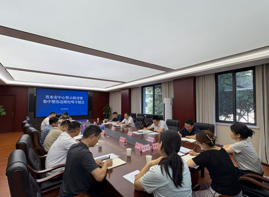 6月6日,水安中心党总支召开警示教育暨集中整治违规吃喝专题会议,深入学习领会习近平总书记关于加强党的作风建设的重要论述和中央八项规定及其实施细则精神,认真贯彻省委常委会和省政府党组会议关于集中整治违规吃喝会议精神,全面落实厅党组关于整治违规吃喝的部署要求,研究中心贯彻落实举措。