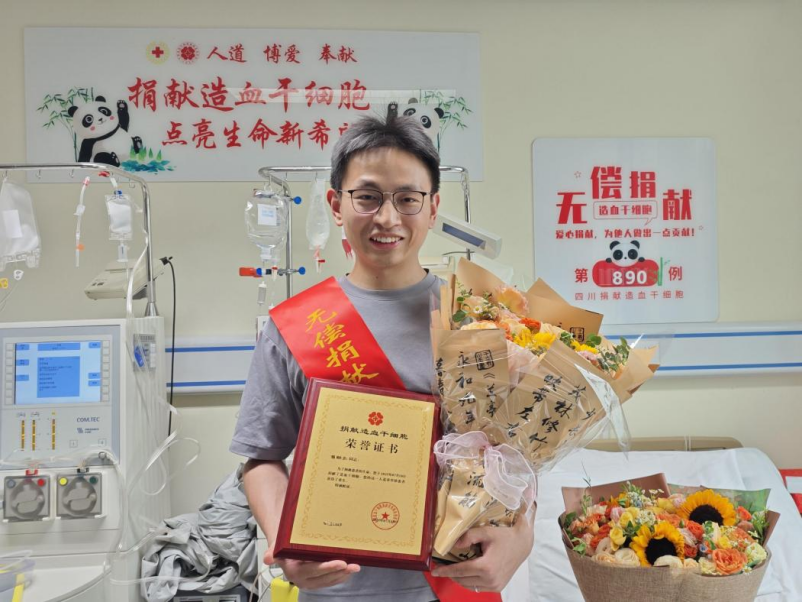 近日,四川省某医院造血干细胞采集室内,暖意流淌,爱心汇聚。省河湖中心青年职工小余同志平静地躺在病床上,鲜红的血液在仪器中循环、分离,承载着生命希望的造血干细胞一点点汇聚。随着采集顺利完成,小余同志成为四川省第890例造血干细胞捐献者,为一位素未谋面的血液病患者送去了重生的“生命火种”。家人和工作人员全程陪伴,河湖中心工会前往慰问,共同见证这温暖一刻。